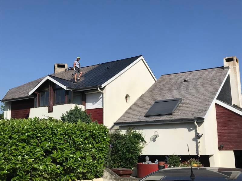 Pour chaque service, comme la peinture de toiture, nous commençons par un traitement fongicide, dégraissant et anti-mousse. Ensuite, nous effectuons un rinçage méticuleux, tuile par tuile, avant d'appliquer une peinture de référence de chez Seigneurie en deux couches. Ce processus nous permet d'offrir une garantie de 10 ans sur nos prestations de peinture toiture.